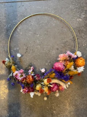 J’utilise également des fleurs séchées et parfois des éléments originaux, pour des créations uniques et pleines de vie.